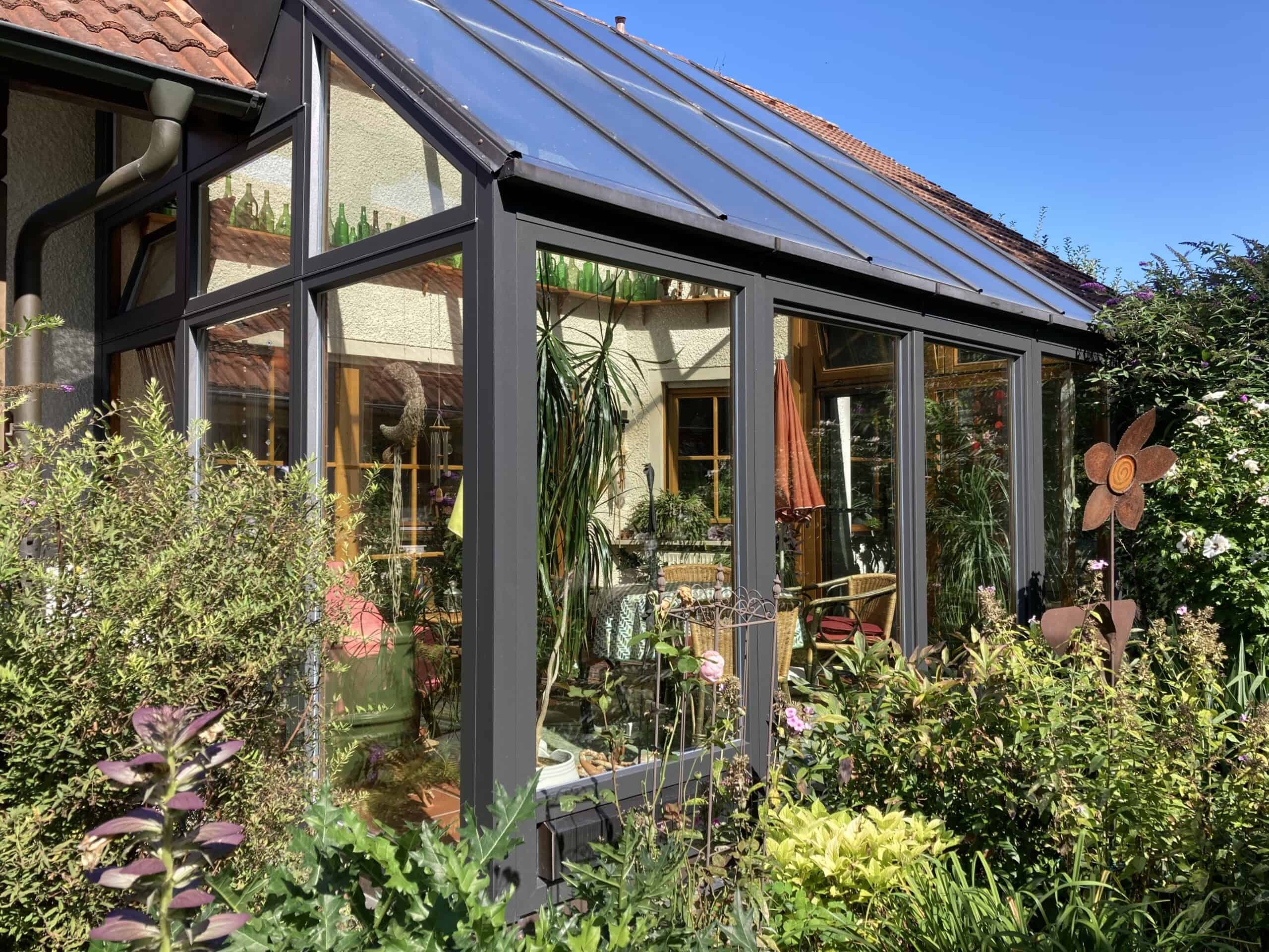 Ich möchte mich auch bedanken, für den reibungslosen Ablauf der anfallenden Arbeiten, für die fachkundige und sorgfältige Arbeitsweise Ihrer freundlichen Mitarbeiter. Das Resultat gefällt uns allen sehr gut und ich hoffe, dass Wind und Wetter unserem „neuen“ Wintergarten nichts mehr anhaben können.